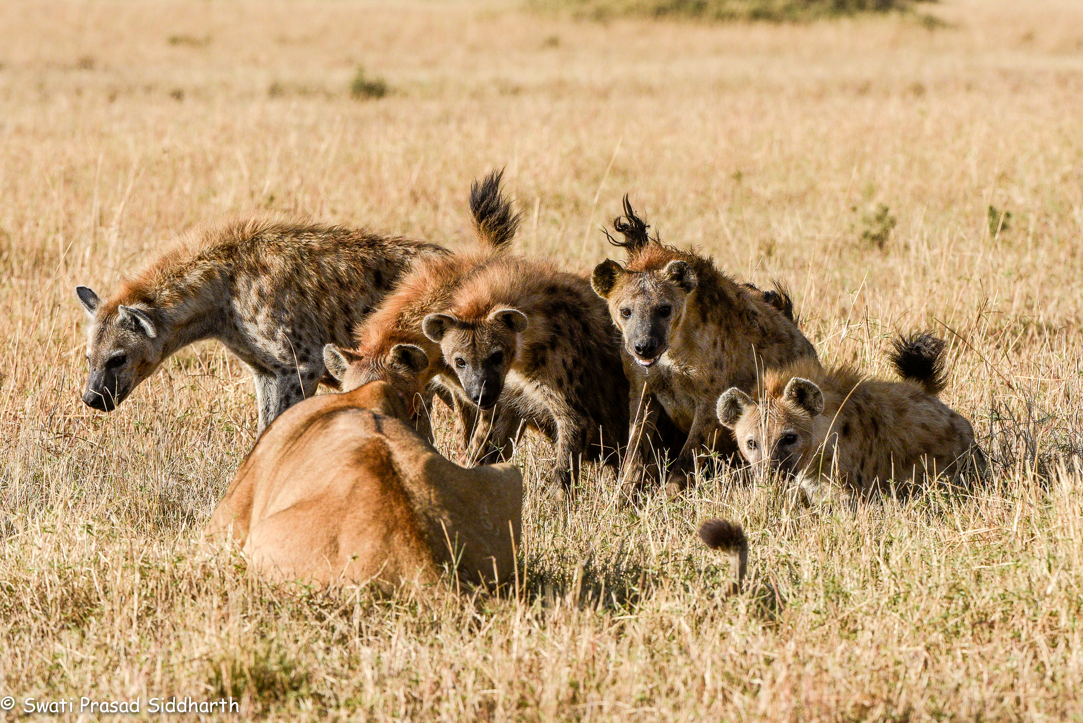 If there must be a fight for territory, then it should be fought on equal terms … Here one of the lionesses has a face off with a pack of hyenas that had managed to isolate her from the pride.