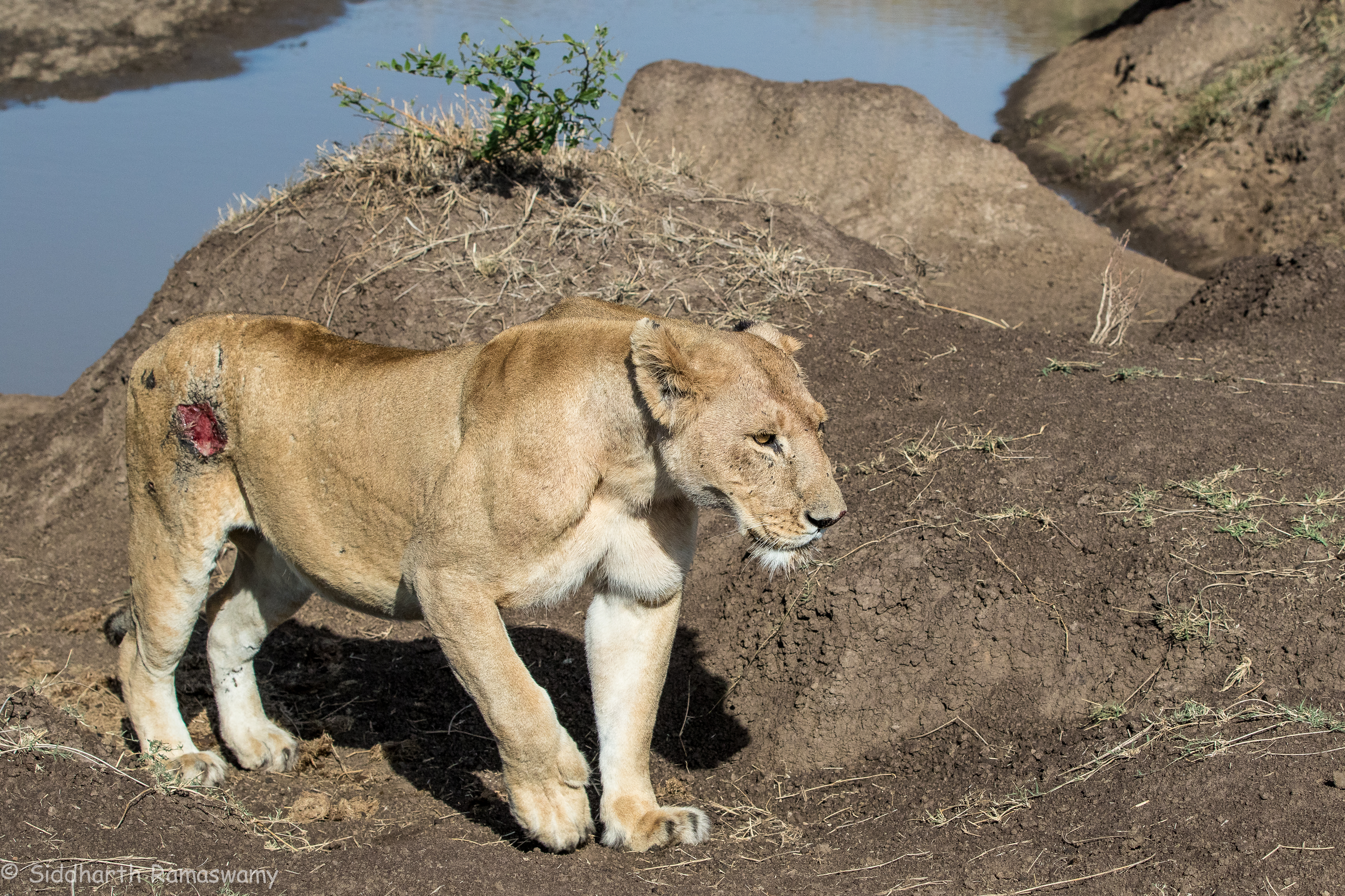 We read all through this year about Siena, one of the matriarchs of this pride being injured repeatedly. And how she had been treated again and again for her wounds. Normally there is no human interference allowed and nature takes its course. But lions are a severely endangered species and the wildlife service decided to intervene repeatedly. We were very fortunate to meet her in October this year – she walked past us, just a few feet away. Her wound looked painful but was definitely healing.