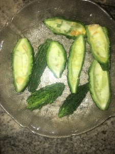 The Mormordica Charantia is a beautiful vine which gives out delicate tendrils that wrap themselves, and cling to, any available support. Equally beautiful are the vibrant yellow flowers. Yet, this vegetable is no favourite with most people. It lives up to its name and is incredibly bitter. But like most of life, closer acquaintance reveals the hidden flavours behind the superficial taste. There are methods to remove the bitterness.